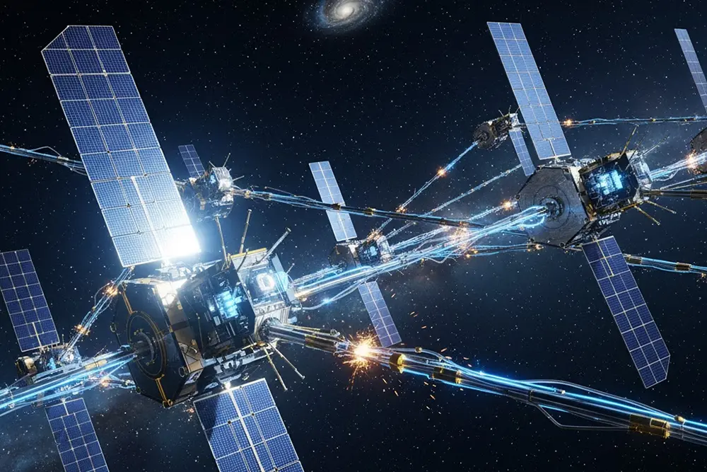 La infraestructura de IA exige una conectividad de ultra alta velocidad. Dado que las fibras ópticas terrestres no son una opción, Project Suncatcher propone una red de transmisión de datos inalámbrica.